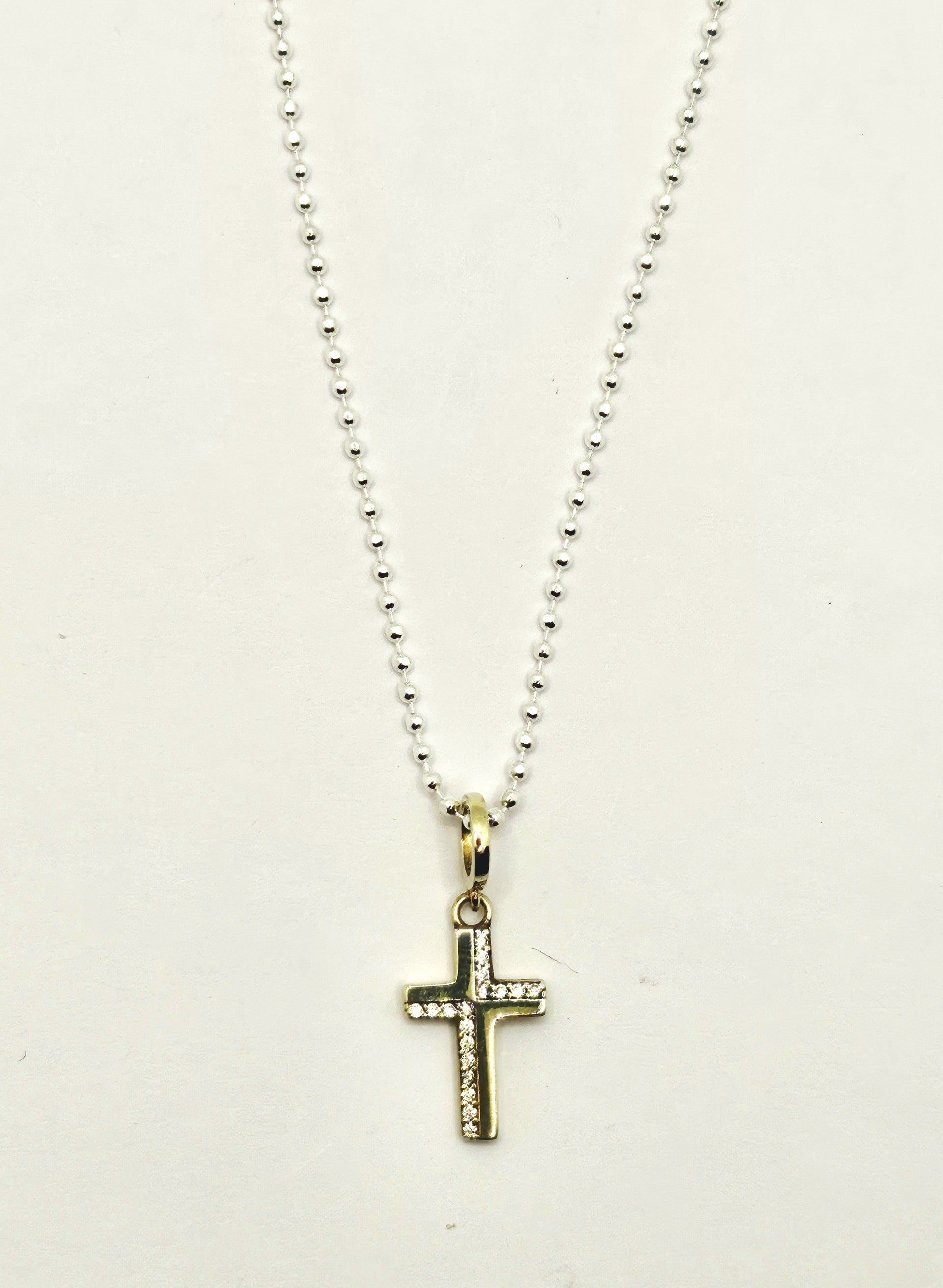 micro set Cubic Zirconia cross pendant on a sterling silver 18" ball link chain
