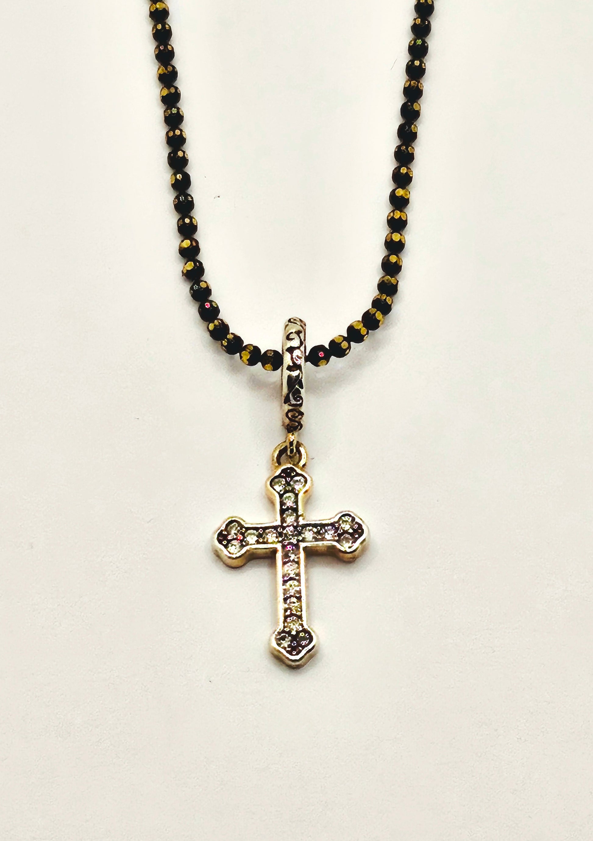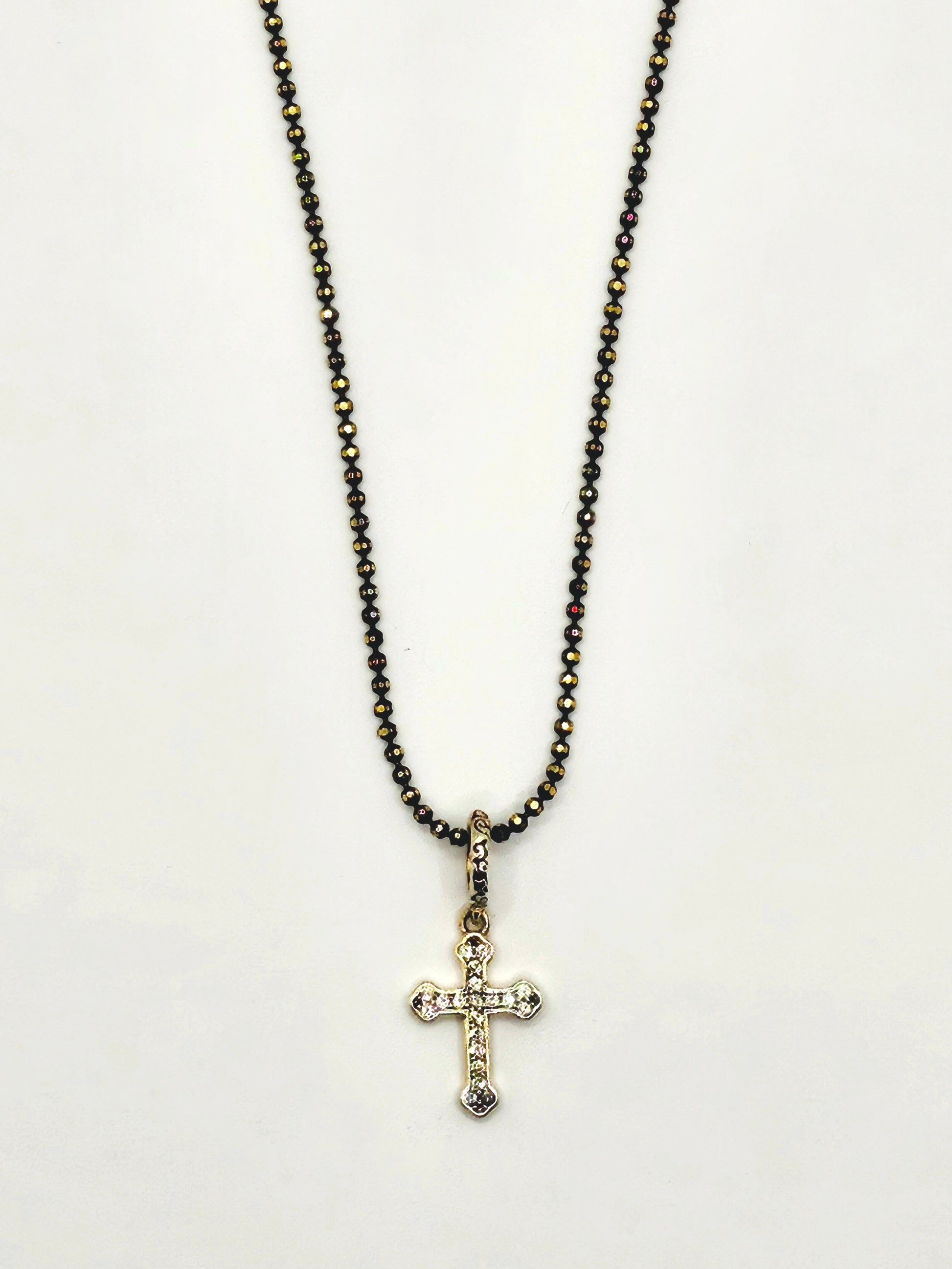 Cubic Zirconia on a 20" oxidised faceted brass ball link chain.